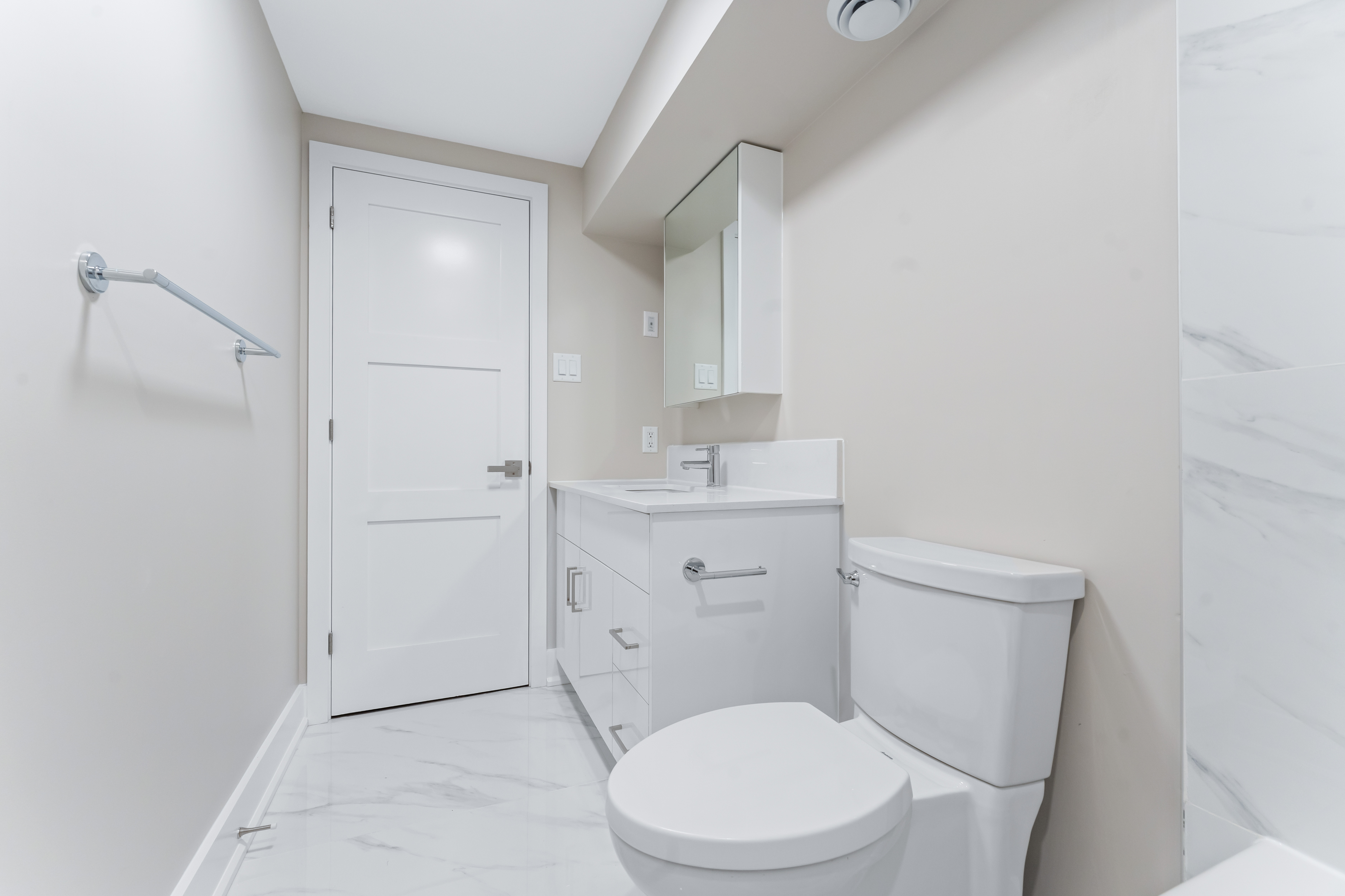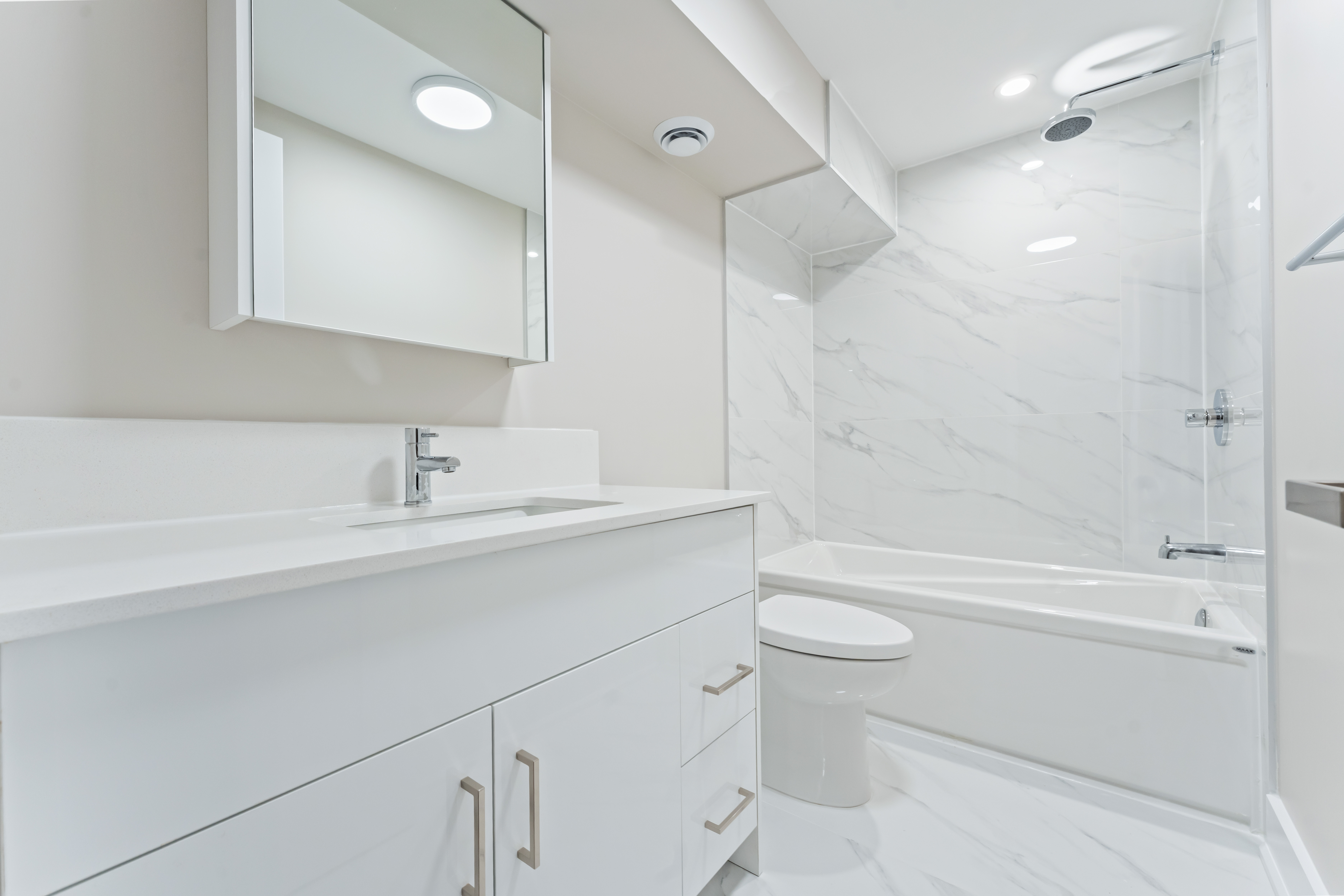 Clean, renovated bathrooms; vinyl/hardwood-style flooring